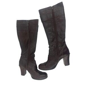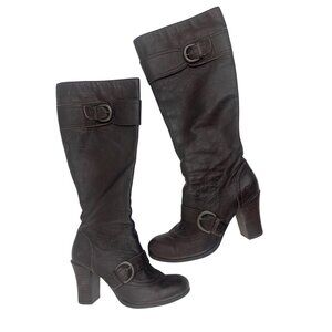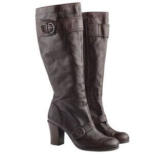 Born Alika Equestrian Buckle Detail Brown Leather Boots Size 8 Comfort Lined