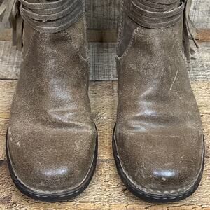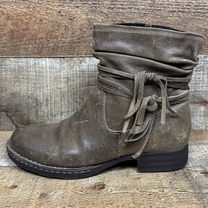 Born Amarena Brown Distressed Leather Tassel Booties Ankle Boots Size 9.5