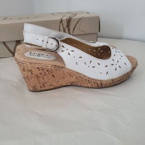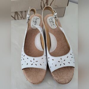 Born Andaya White Leather Slingback Wedge Sandals Size 9 EU 40.5 Summer Spring