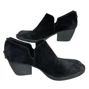 Born Ankle Boots Women's 7M Black Suede Leather Comfort Block Heel Zip Booties