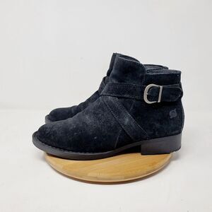 Born Ankle Boots Womens 9 Trinculo Black Suede Comfort Buckle Strap Moto Bootie