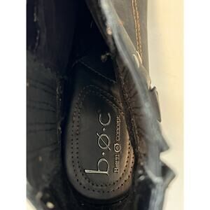 Step out in style with these Born BOC ankle boots! These women's size 7.5 boots feature a classic black leather design, perfect for adding a touch of edgy sophistication to any outfit.