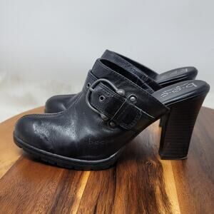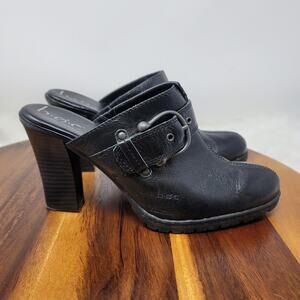 Born B.O.C Black Leather Slide In Clog Heeled 4" Women Shoe 39 / US 8