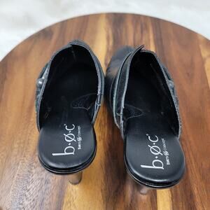 Born B.O.C Black Leather Slide In Clog Heeled 4" Women Shoe 39 / US 8 In Excellent Condition Bin 5570