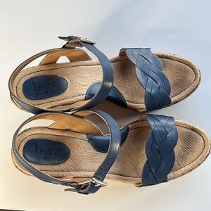 Born BOC Blue Leather Buckle Strap Sandal Wedge Heel Size 9