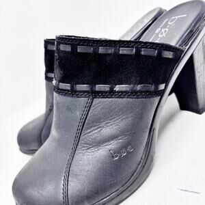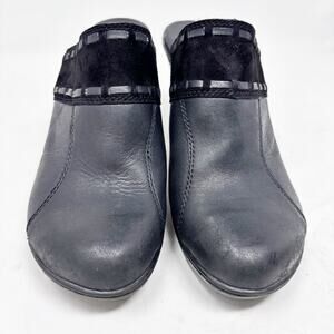 Born BOC Clogs Size 9 Black Leather Suede Heeled Mule Slide Dolly Parton