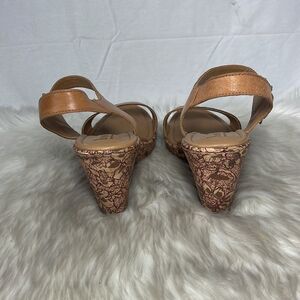 Born BOC Concept Tan Leather Strappy Sandals Painted Cork Wedges Sz 11