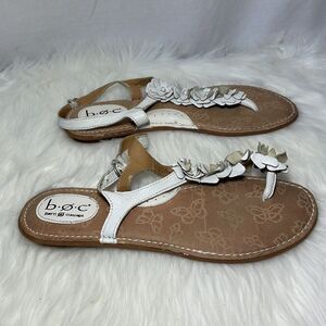 Born BOC White Leather Floral Thong Sandals Sz 10