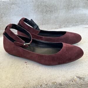 Born Ballet Flats Size 9.5 Burgundy Suede Ankle Strap Moody Dark Cherry Grunge
