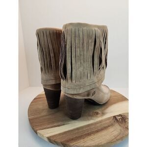 Born Banbury Fringe Moc Bootie Women's Size 6 Tan Nubuck Heeled W02016