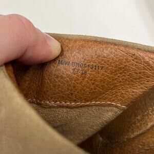 Excellent preowned condition. Like new except for minor flaw in wood of inner left heel (please see close-up photo)