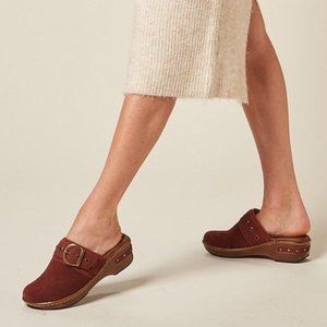 Born Banyan Clogs Suede Leather Buckle Slip On Dark Brick Red Brown Size 6 NEW