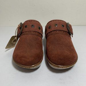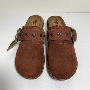 NEW Born Banyan Clogs Suede Buckle Slip On Dark Brick Distressed Size 6
