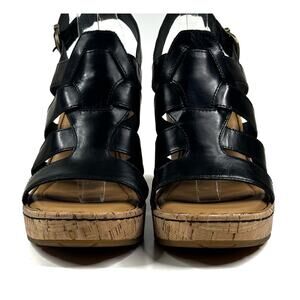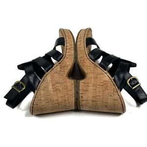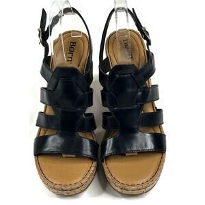 Born Bernese Womens Hand Crafted Black Leather Wedge Sandal Size 10M Caged New