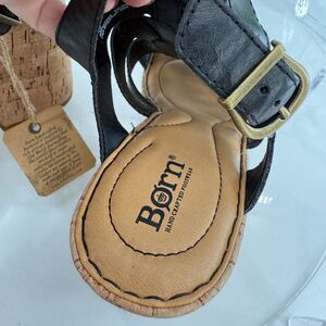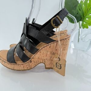 Born Bernese Womens Sandal Size 10 Black Leather Wedge Heel Open Toe Retro Caged