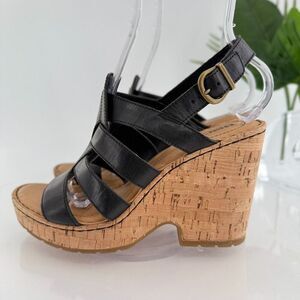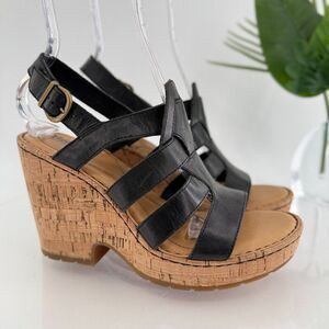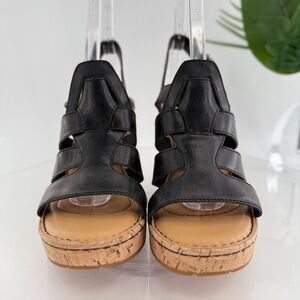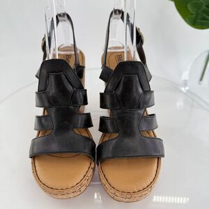 Born Bernese Womens Sandal Size 9 Black Leather Wedge Heel Open Toe Retro Caged