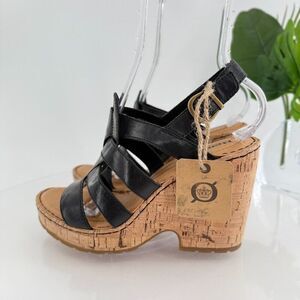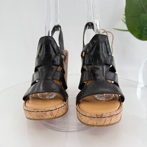 Born Bernese Womens Sandal Size 9 Black Leather Wedge Heel Open Toe Retro Caged