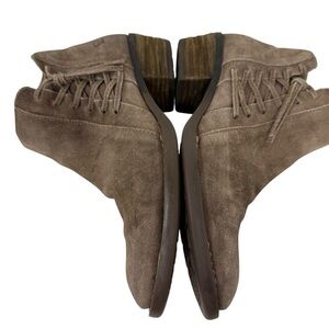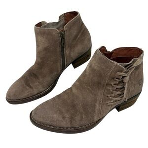 Born Bessie Taupe Suede Ankle Boots F36455 Sz 8.5 Low Heel Side Zip Lace Details