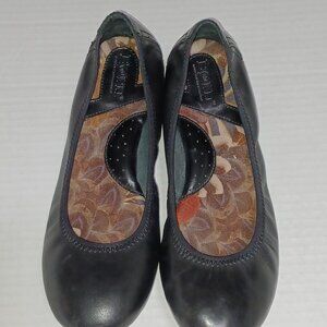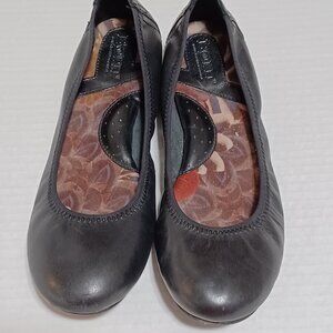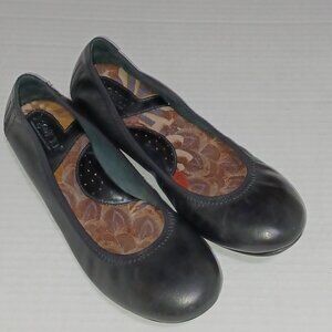 Born black ballet slipper shoes are size 6.5 M. They are comfortable.