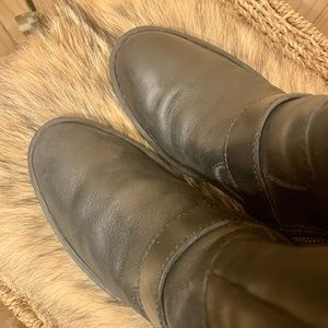 Chic heeled boots by Born. Features side zipper and buckle accent. Ideal for versatile styling. Noticeable wear on heels.