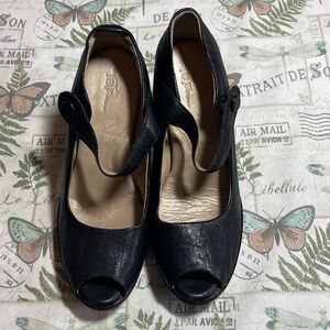 Born Black Heels 9 leather mary Jane peep toe