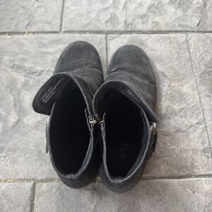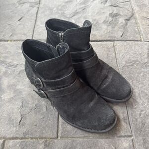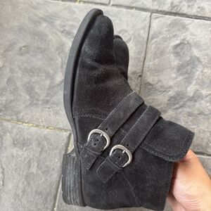 Born Black Leather Adler Style Double Buckle Monk Strap Zip Ankle Boot 8.5M