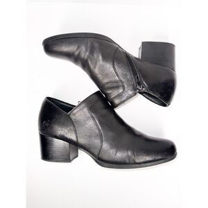 Born Black Leather Ankle Boot Shootie Bootie Block Heel Side Zip Classic Women Size 9