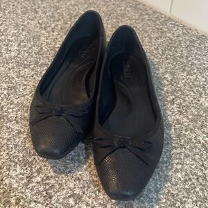 Experience timeless elegance with the Born Black Ballet Flats, designed for both comfort and style. These minimalist slip-ons feature a smooth, solid black finish and a classic round toe, making them perfect for any casual or business casual occasion. With their flat sole and elastic edges, they ensure a secure and comfortable fit throughout the day. Adorable bow top she’s in near perfect condition women’s size 7.5 but can fit 8