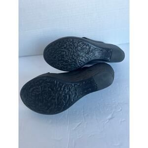 Born Black Leather Criss Cross Wide Straps Platform Wedge Slip On Sandals Size 8