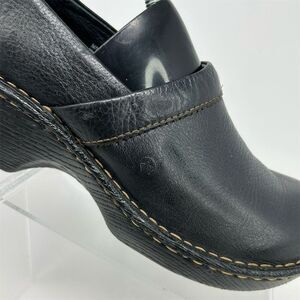 Born Black Leather Slip On Clogs Size 6 Comfortable Casual Shoes Round Toe