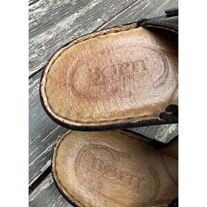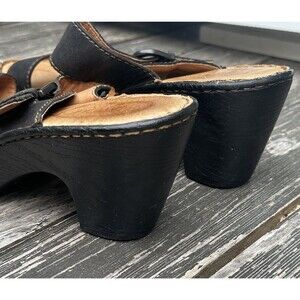 Born Black Leather Slip On Slide Sandals Heeled Shoes Buckle Size 8