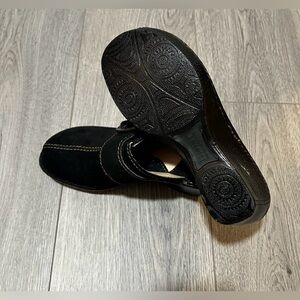 Born Black Suede Mules with Buckle Size 7 Elegant black suede mules. Features a stylish buckle. Comfortable and chic design.