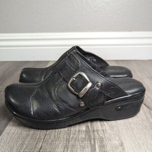 Born Black leather & suede strap buckle mule clogs womens 7