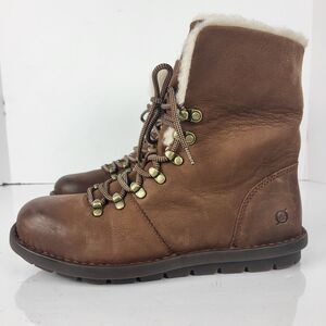 Born Blaine Shearling waterproof Ankle Boots Brown Leather Size 8 M