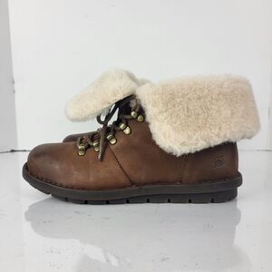 Born Blaine Shearling waterproof Women's Ankle Boots Brown Leather Size 8 M