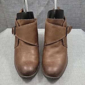 Born B.o.c Leather Brown Monk Strap ankle boots, Boho, slip-on, Women's sz 8.5