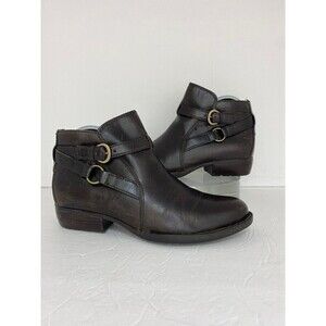 Born Boots Sz 7 M Short Boots Brown Leather Women D86123 Brass Colored Buckle