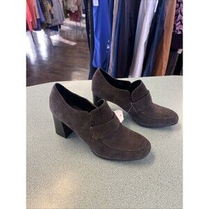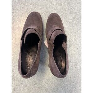 Born Booties Women's 7.5 Shoes Slip On Loafers 3" Heels Gray Suede Leather Block