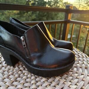 Born Booties Women’s 9 M Dollie Shoes Black Leather Platform Ankle Block Heels