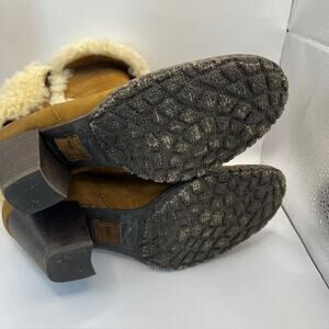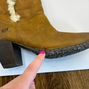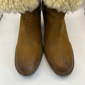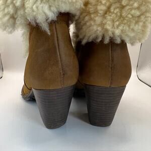 Born Boots Donna Booties Womens 8.5 Cognac Brown Leather Sherpa Lined Block Heel