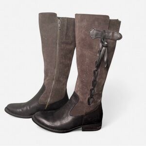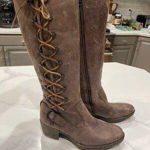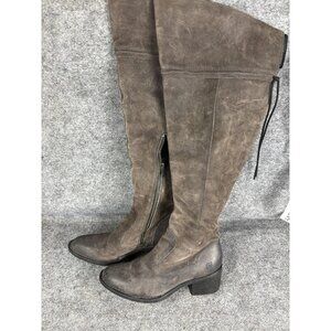 Born Boots Gray Knee High New 8 1/2 Cotto Suede Lace Up Back Side Zippper Grey