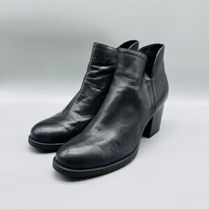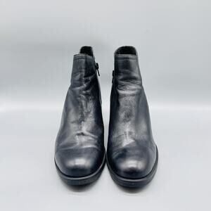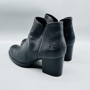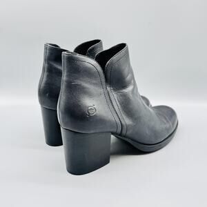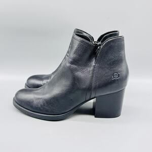 Born Boots Womens 9 Black Leather Ankle Booties Round Toe Block Heel Zip Comfort