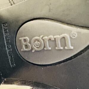 Round toe; inner zip entry; stack-style block heel; Born crown logo at heel and outsole.