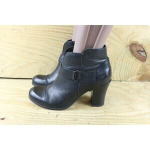 Born Boots Womens 9 Black Leather Kastel Side Zip 3" Heel Ankle Bootie