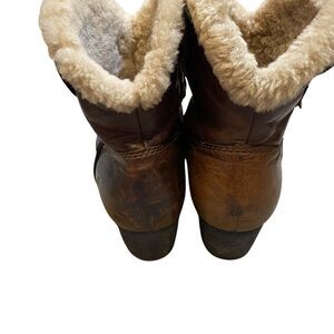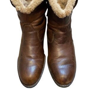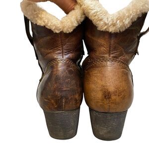 Born Brand Ankle Booties Sz 8 Brown Distressed Leather Shearling Lined Western