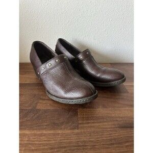 Born Brown Leather Ankle Booties Clogs Block Heels Size 8.5 D18306 Studs