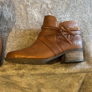 Beautiful Born leather ankle boots in rich brown. Side zip closure for easy on/off. Soft cushioned footbed for all-day comfort. Gently worn and in excellent condition. Perfect for fall and winter outfits!