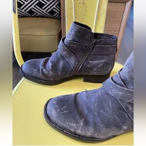 Born Brown 7.5 Leather Boots Women’s Distressed Buckle/Straps Side Zip.