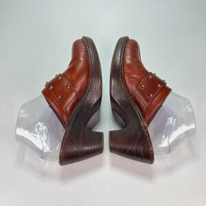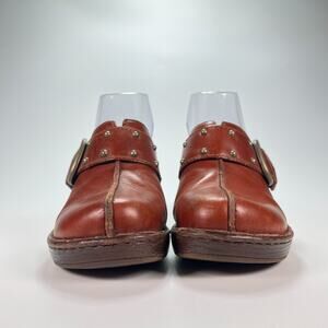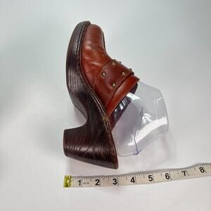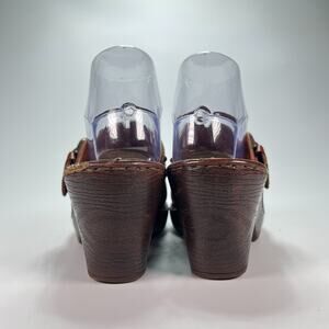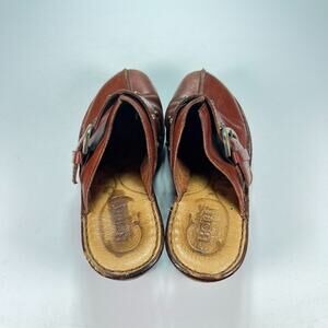 Born Brown Leather Comfort Slip On Chunky Stacked Heel Clog B40826 Womens Size 7