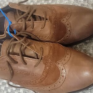 Stylish brown leather flats. Classic lace-up design. Perfect for everyday wear.